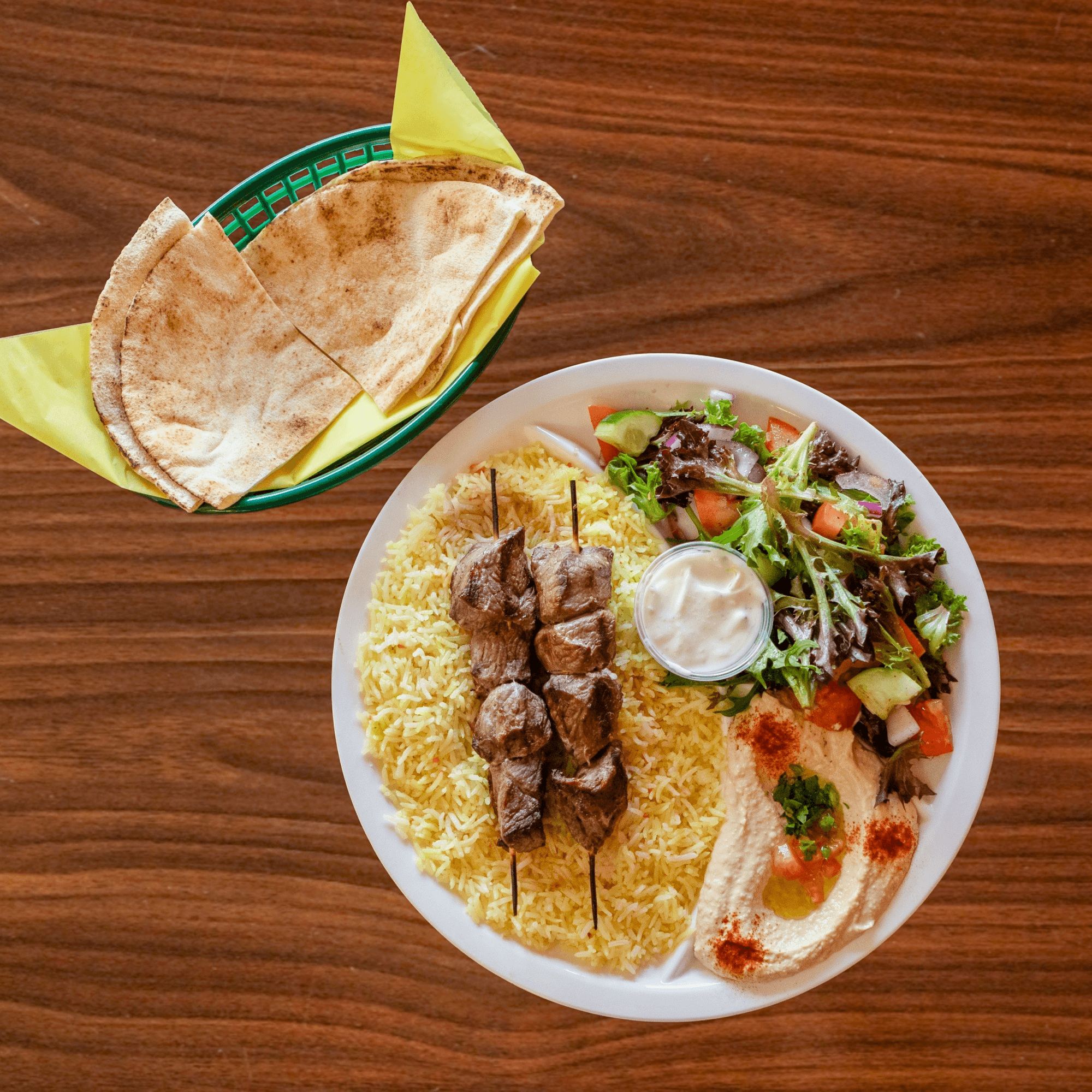 Absolutely delicious food, I had the chicken kabobs, the rice was so flavorful and oh my goodness that garlic sauce! The hummus with pita was divine, very authentic!